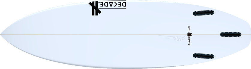 Wider nose and tail, reduced nose and tail rocker, single entry concave with magnified double barrel concave through the fins and vee upon exit, makes this board stays on rail even in flat spots, glides over reo sections, draws tight arcs in the smallest pockets, and paddles like a board 3” longer. BlackFlag is a step down performance board.