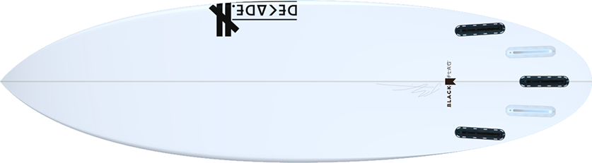 Wider nose and tail, reduced nose and tail rocker, single entry concave with magnified double barrel concave through the fins and vee upon exit, makes this board stays on rail even in flat spots, glides over reo sections, draws tight arcs in the smallest pockets, and paddles like a board 3” longer. The round tail provides smother transitions from rail to rail. Black Flag is a step down performance board.